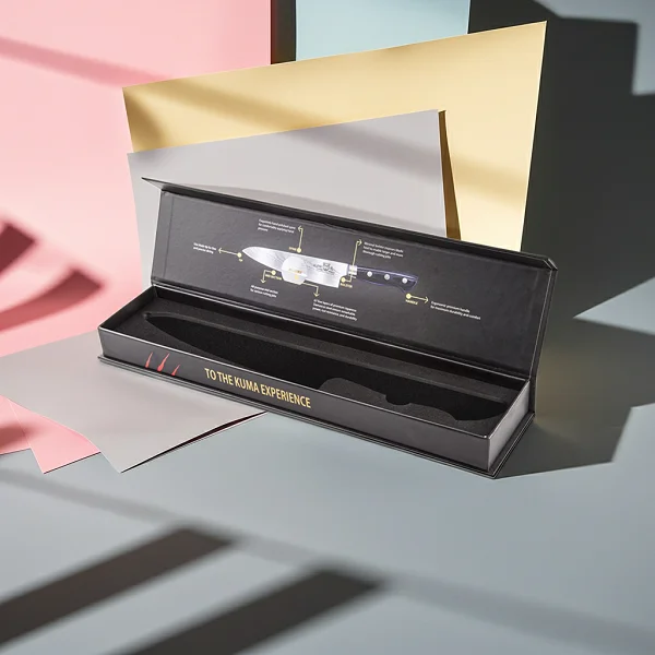 Present your cutlery and collectible blades with the respect they deserve using our premium custom knife boxes. Engineered for both safety and sophistication, these boxes are crafted from extra-thick, puncture-resistant rigid board or reinforced corrugated material to ensure that sharp edges and points stay securely contained. The interior is designed to house high-density foam inserts or magnetic strips, precision-cut to the exact silhouette of your knife, preventing any movement that could dull the blade or scratch the handle during transit.